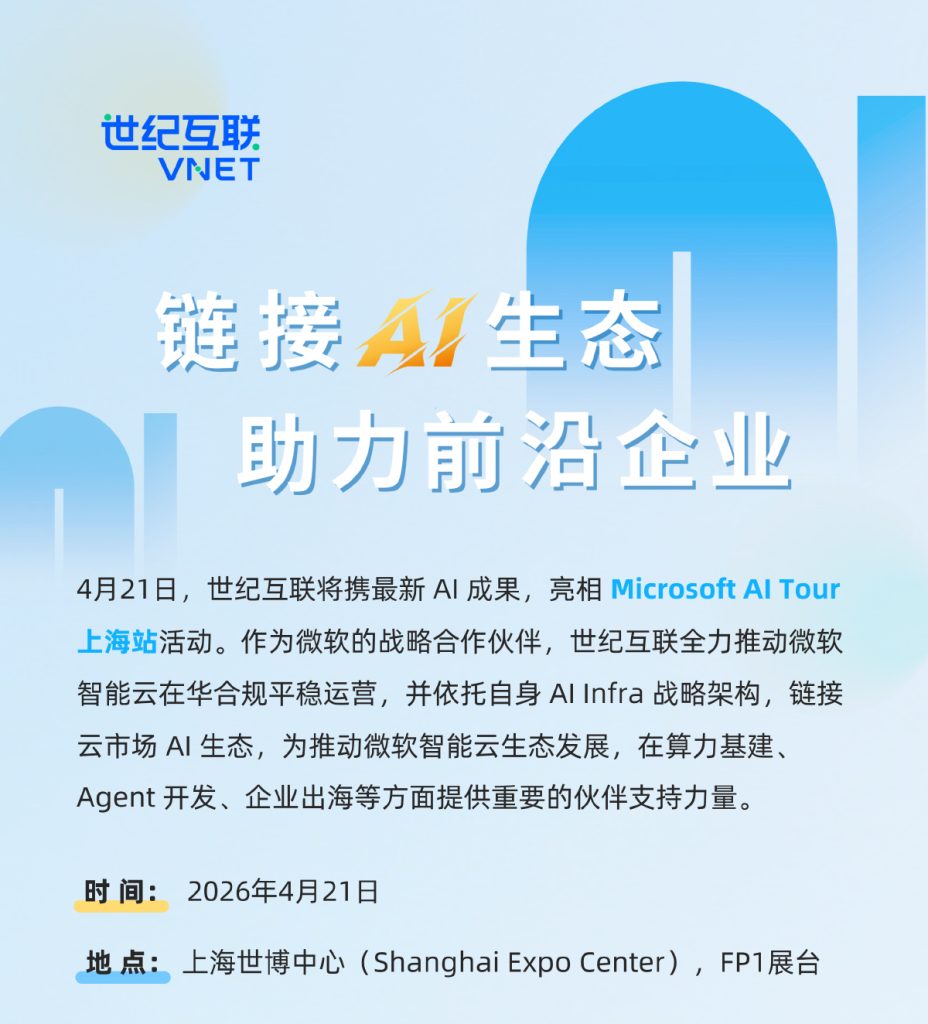 世纪互联亮相微软 AI Tour 上海站,亮点抢先看